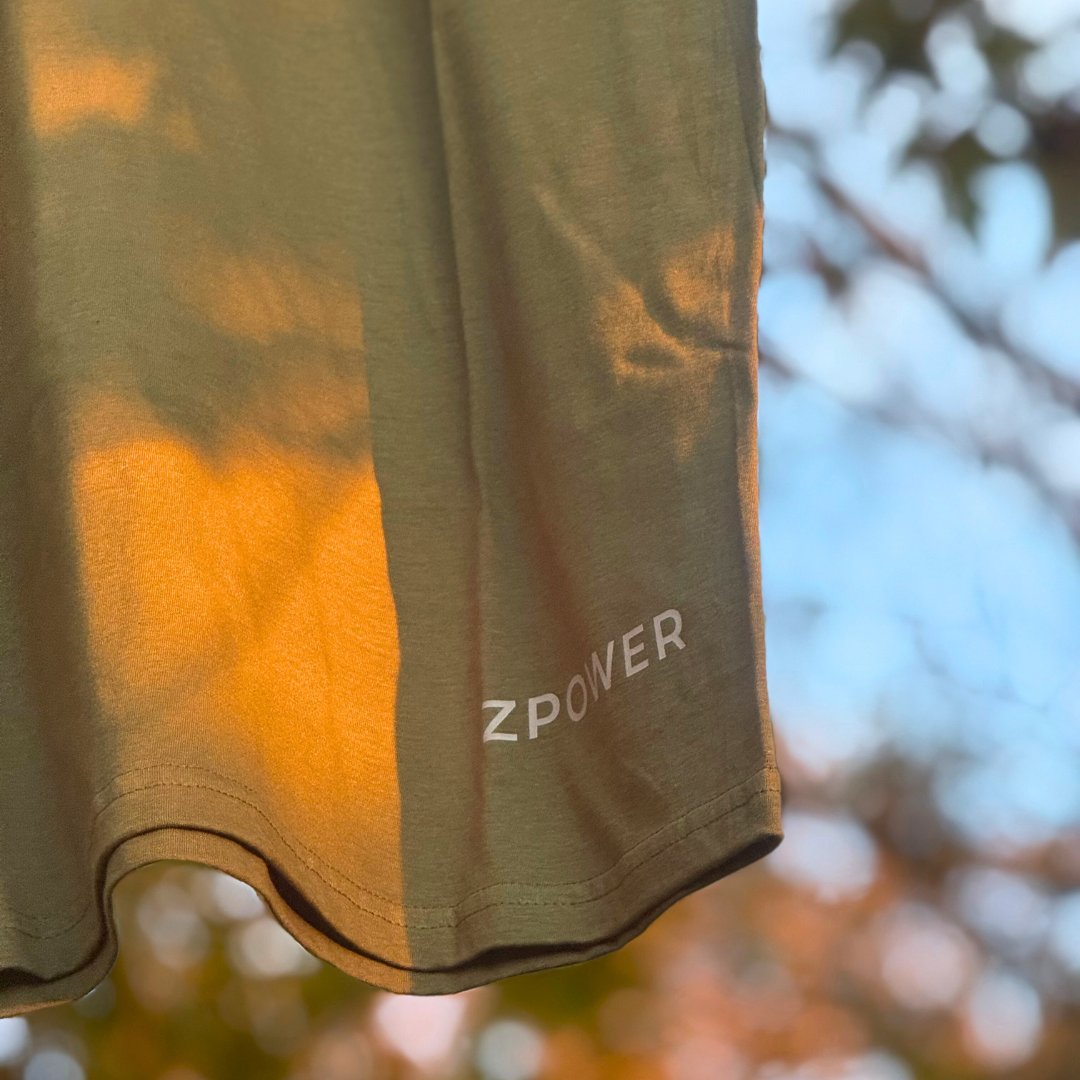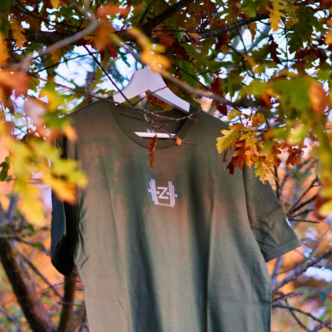 DTF grigio chiaro: • Logo al centro del petto • Scritta “ZPOWER” in basso a sinistra • Motto “VOLONTÀ DI FERRO” sul retro (parte alta della schiena) |